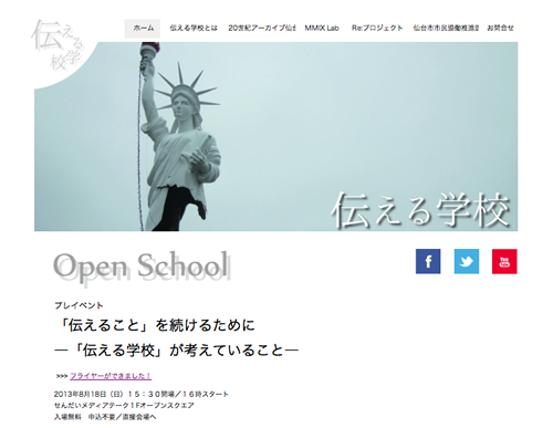 そのために、どういった視点で、どのような取り組みが必要なのか――この「伝える学校」では、これまでに「震災を伝えること」に取り組んできた方々をお招きして、「伝える」ための独自の視点を学んでいきます。そして、その視点を共有しながら仙台市民である私たちができることを考えていきます。ぜひご参加ください。