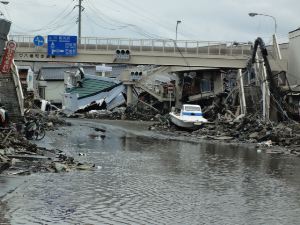 大地震の津波で水没した道路1_石巻 (C)2011 MMIX