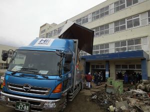 地震後、津波被害の大きかった石巻地区へ3/21緊急支援物資を7tトラックで配送しました。