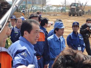 菅直人首相です。訪問地石巻商業高校は震災翌週、燃料が全く入手できない時、高校の先生よりSOSが入り緊急支援で車の燃料2台分を届け、大変喜んでもらったところです。