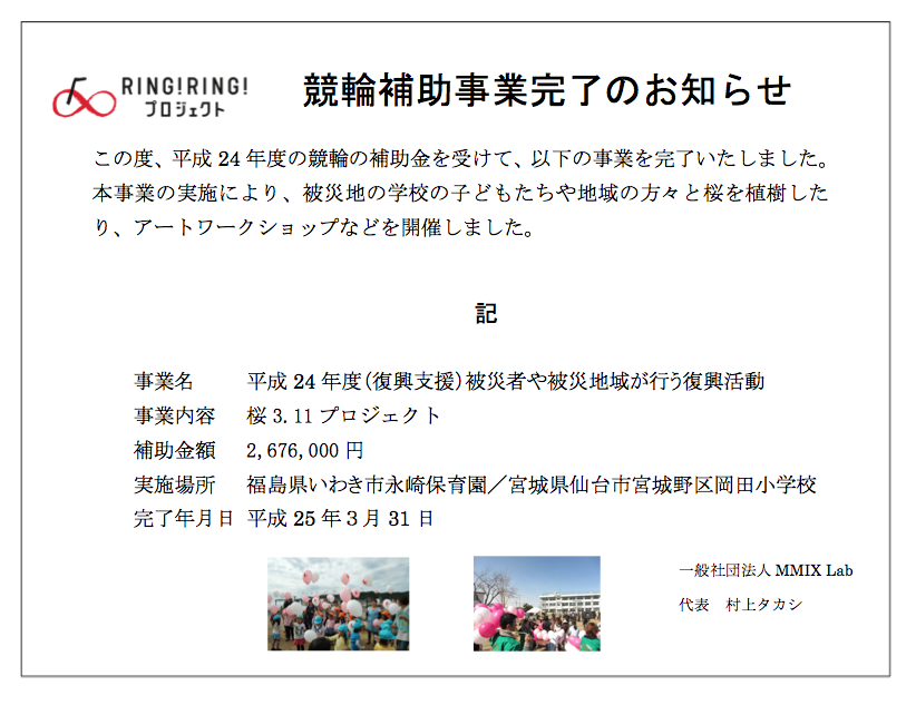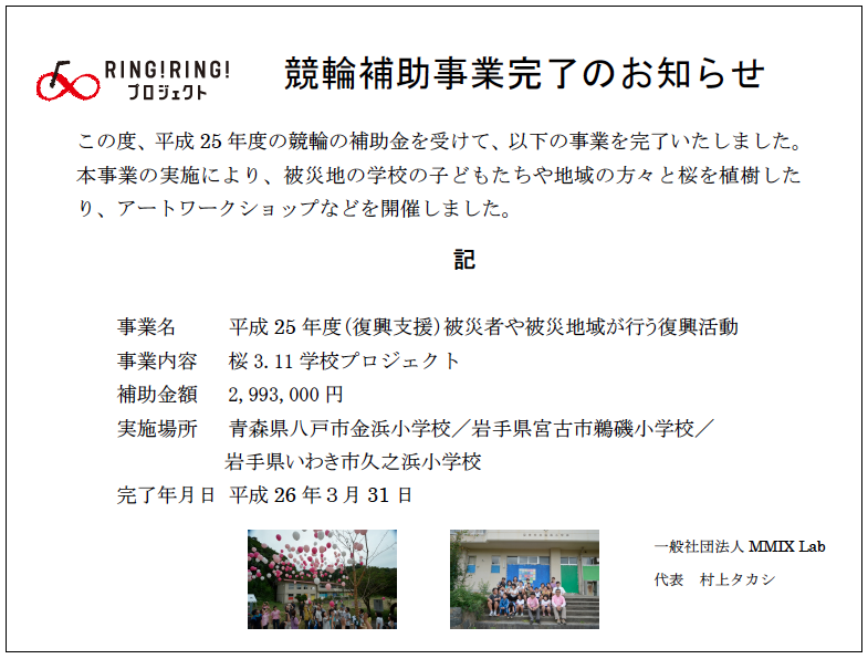 現地の復興支援で活動するNPO(3.11NPO+)等で使用していきます。
